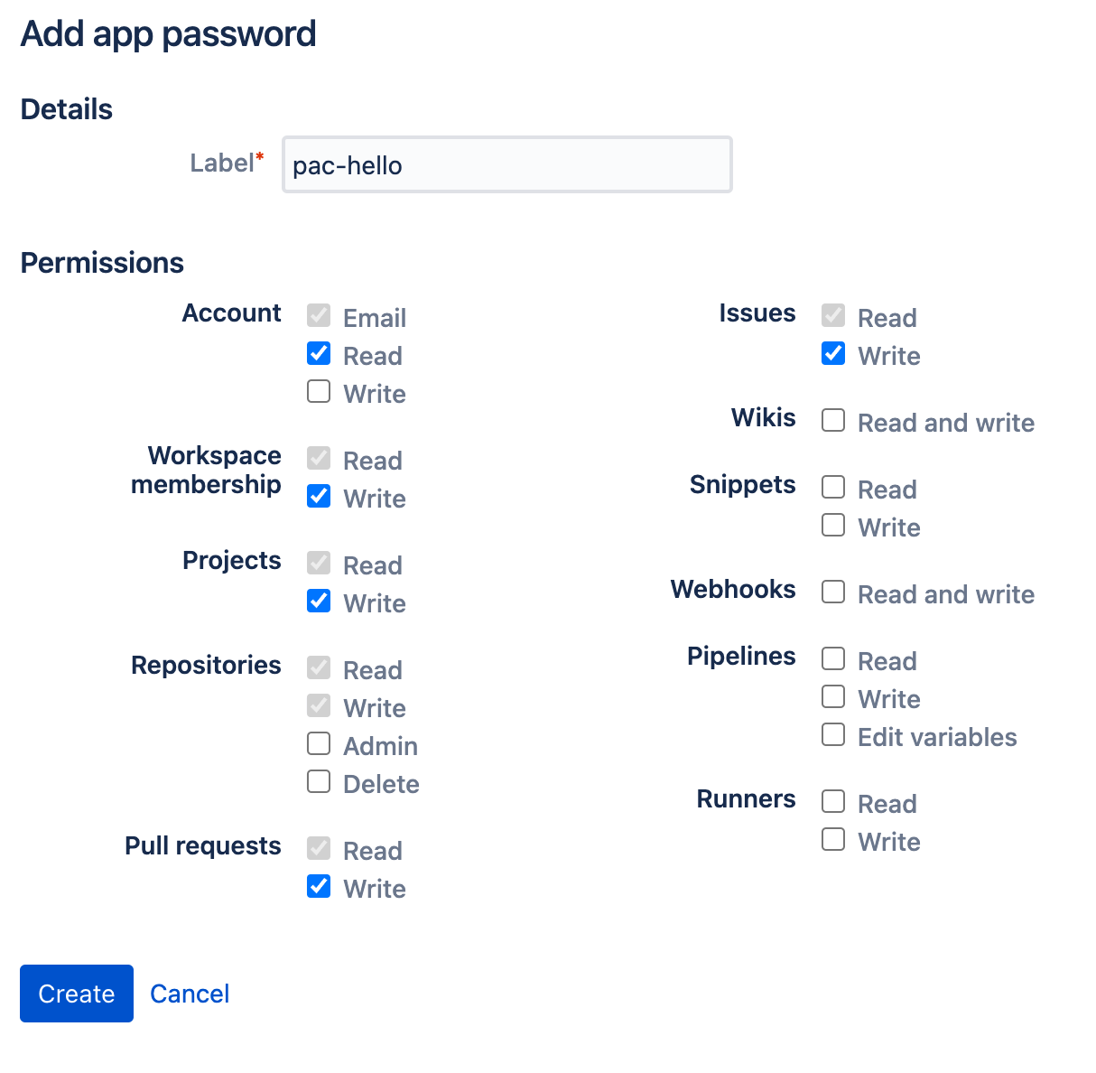 โ„น ๏ธYou now need to create a Bitbucket Cloud app password, please checkout the docs at https://is.gd/fqMHiJ for the required permissions